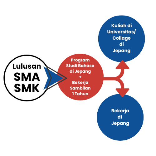 Program studi bahasa satu tahun di Jepang ini juga dapat diikuti oleh siswa lulusan SMA, SMK, D3 yang ingin mengambil jalur bekerja setelah lulus sekolah bahasa di Jepang dengan visa kerja SSW. Jalur SSW ini akan sangat menguntungkan karena siswa jauh lebih siap dari segi kemampuan bahasa dan kesiapan adaptasi di dunia kerja di Jepang.